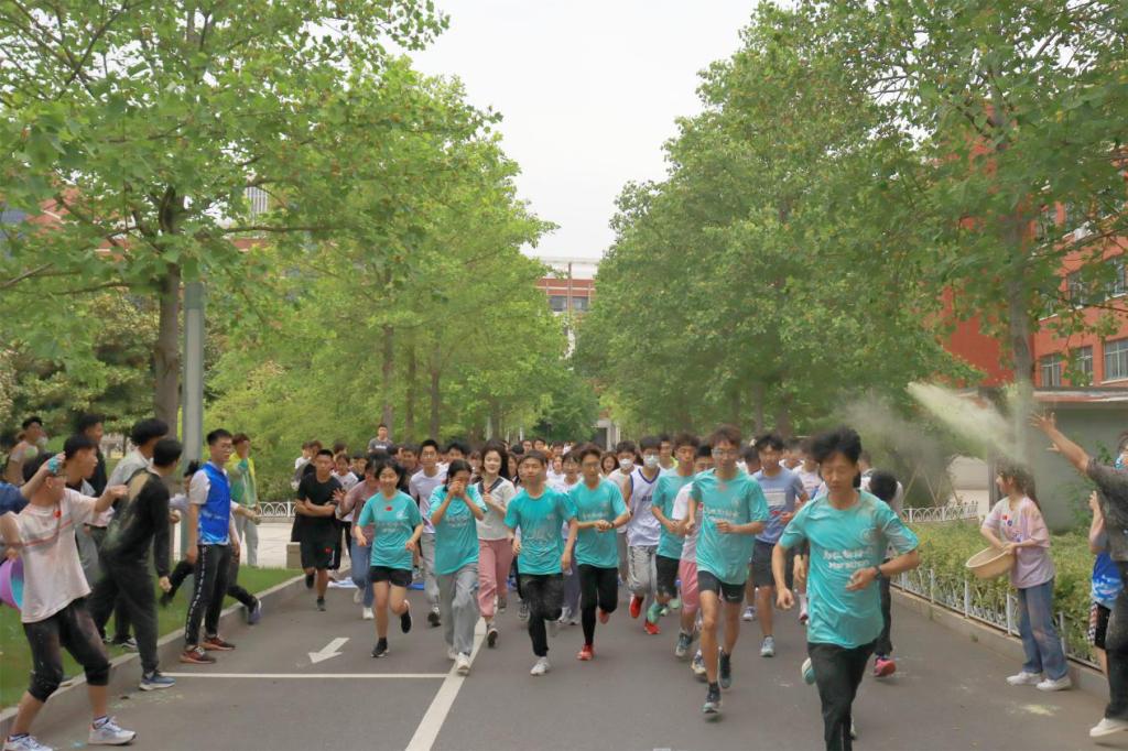 本次彩色跑活动以泰山广场为起点,马拉松志愿者协会志愿者领跑,途中设有医疗点与撒粉站点等为选手们加油助威。随着彩跑的枪声将“彩粉大战”打响,同学们冲出起跑线,抛撒在蓝天下的“彩粉”,好似围绕在周身的长虹,同学们以最本真的自我,用最绚丽的颜色,最美的姿态迎向终点。