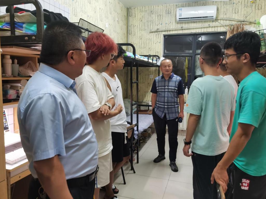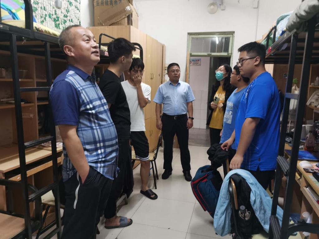 为进一步做好新型冠状肺炎疫情常态化防控工作,并更好了解学生返校情况确保新学期学生工作顺利进行8月29日晚安全学院党委书记张恩生、党委副书记兼副院长王建友、团委书记潘刚及全体辅导员深入学生宿舍对返校同学进行探望与慰问。