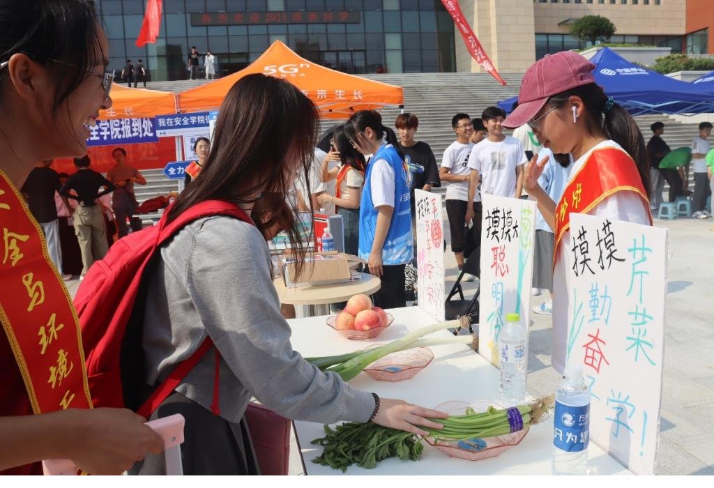 迎新现场,学院新同学的到来营造了满满的仪式感。铿锵有力的鼓声伴着欢声笑语在安全学院迎新处蔓延开来寓意安全学子们一鼓作气昂扬的斗志向求学征程出发。“摸摸苹果,平平安安摸摸大葱,聪明伶俐;摸摸芹菜,勤奋好学“时光信箱”鼓励同学写下自己未来寄语定制刮刮乐为新同学送上入学礼品……新同学们充分感受到来自学院的温暖