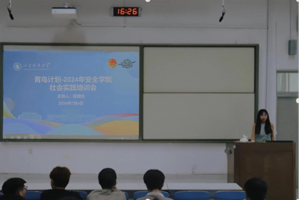 点击:为进一步加强暑期“三下乡”社会实践的活动宣传,号召更多青年学生利用假期时间投身社会实践,激发同学们服务社会、服务人民的热情,7月4日,安全学院于J1-222举办青鸟计划-社会实践经验交流宣讲会,此次宣讲邀请硕研2022级张靖怡同学为大家做经验分享交流,会议由2023级辅导员冷冬阳老师主持,全体2023级本科生参加宣讲会。