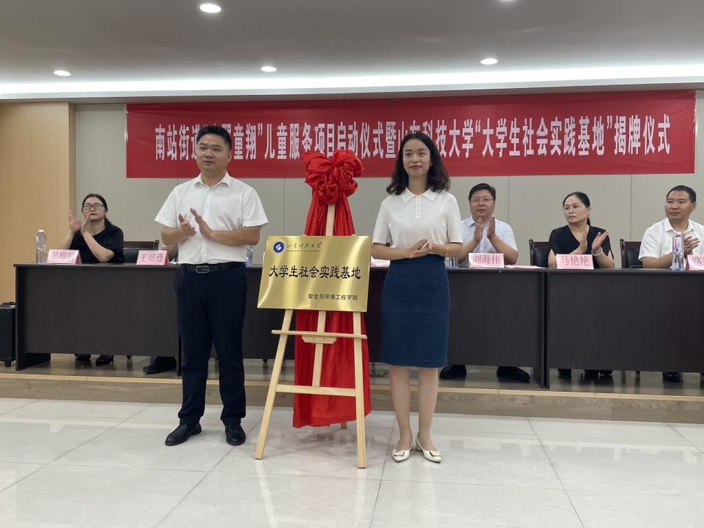 仪式上,山东科技大学安全学院团委书记张娜同汶上县团委书记翟志恒共同为“山东科技大学大学生社会实践基地”揭牌并签署了《山东科技大学与汶上县南站街道共建大学生社会实践基地协议书》。座谈会上,张娜介绍了学校和学院的基本情况,并表示安全学院希望以本次揭牌仪式为契机,与汶上县南站街道党工委共同携手,充分发挥双方优势,将基地建设成为学生了解社会、认识国情增长才干、锤炼品格的实践平台
