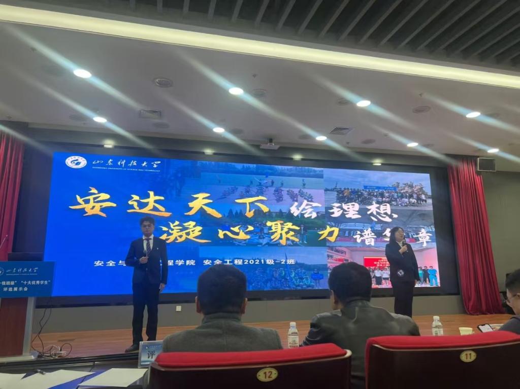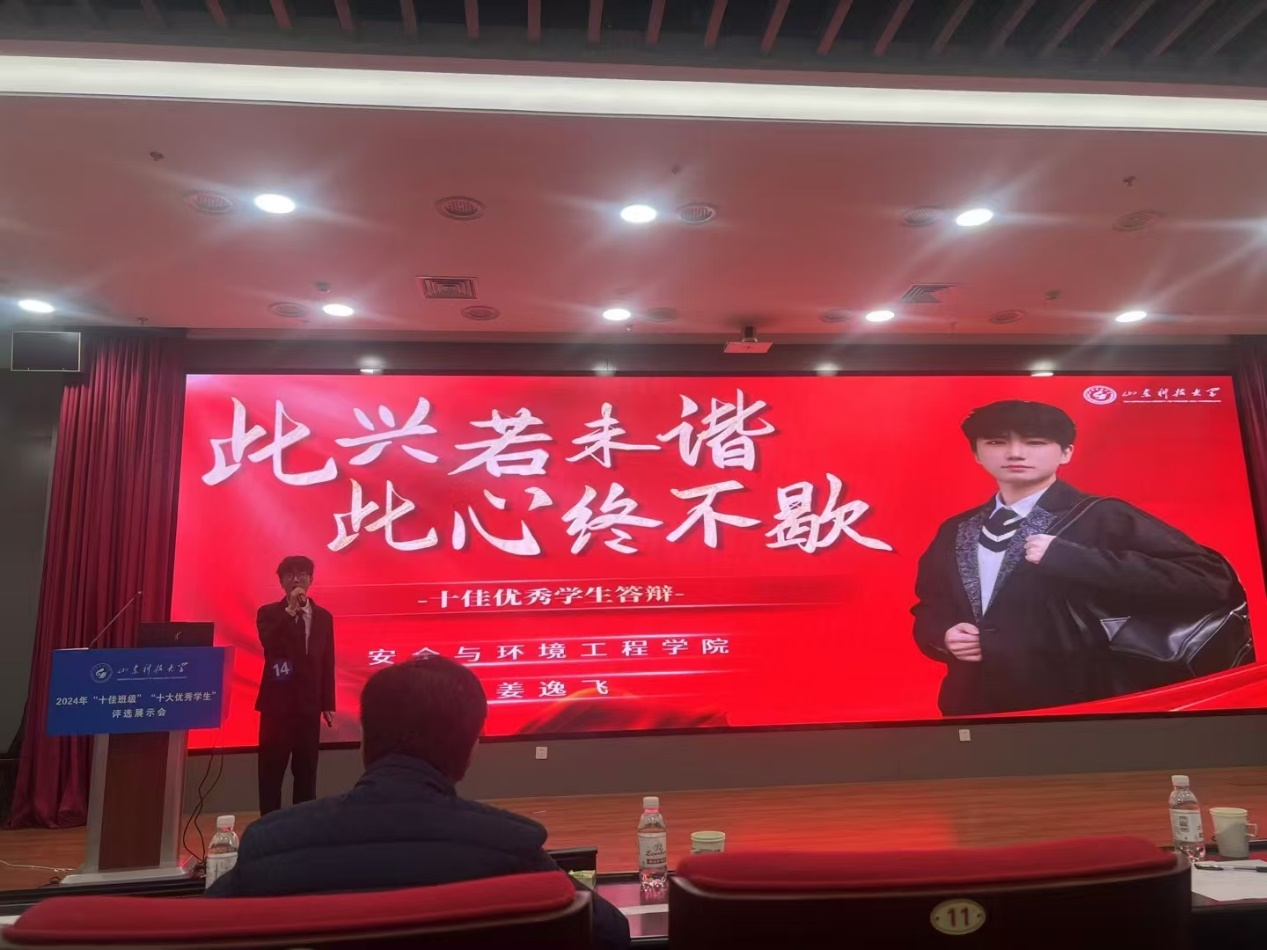 点击:12月3日,山东科技大学2024年度“十佳班级”“十大优秀学生”评选活动在图书馆求新讲堂报告厅举办。安全学院安全工程2021级2班荣获“十佳班级”荣誉称号,安全工程2021级1班学生姜逸飞荣获“十大优秀学生”荣誉称号,学院再获“双十”大满贯!