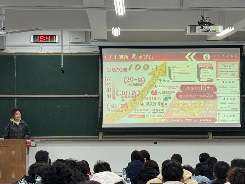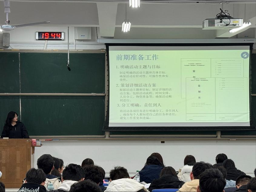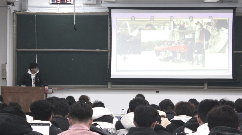 李翊尘通过《雷锋精神的时代回响》主题短片,结合当代青年学生的使命与担当,生动讲述了雷锋同志的生平事迹深刻诠释了雷锋精神内涵。她鼓励同学们要秉持“奉献、友爱、互助、进步”的志愿者精神,投身到社会实践、志愿服务的活动中去,走出校门、走进社会,用双脚去丈量、用双眼去看见、用双耳去倾听,把论文写在祖国大地上。肖思豪以班级实践为例,系统讲解了从需求调研到活动实施的全流程,重点强调了"精准服务"对提升志愿服务效能的重要作用。崔书华衣政翰分别结合团支部社会实践工作实际,分享了志愿服务中的沟通技巧、活动策划及团队协作经验。