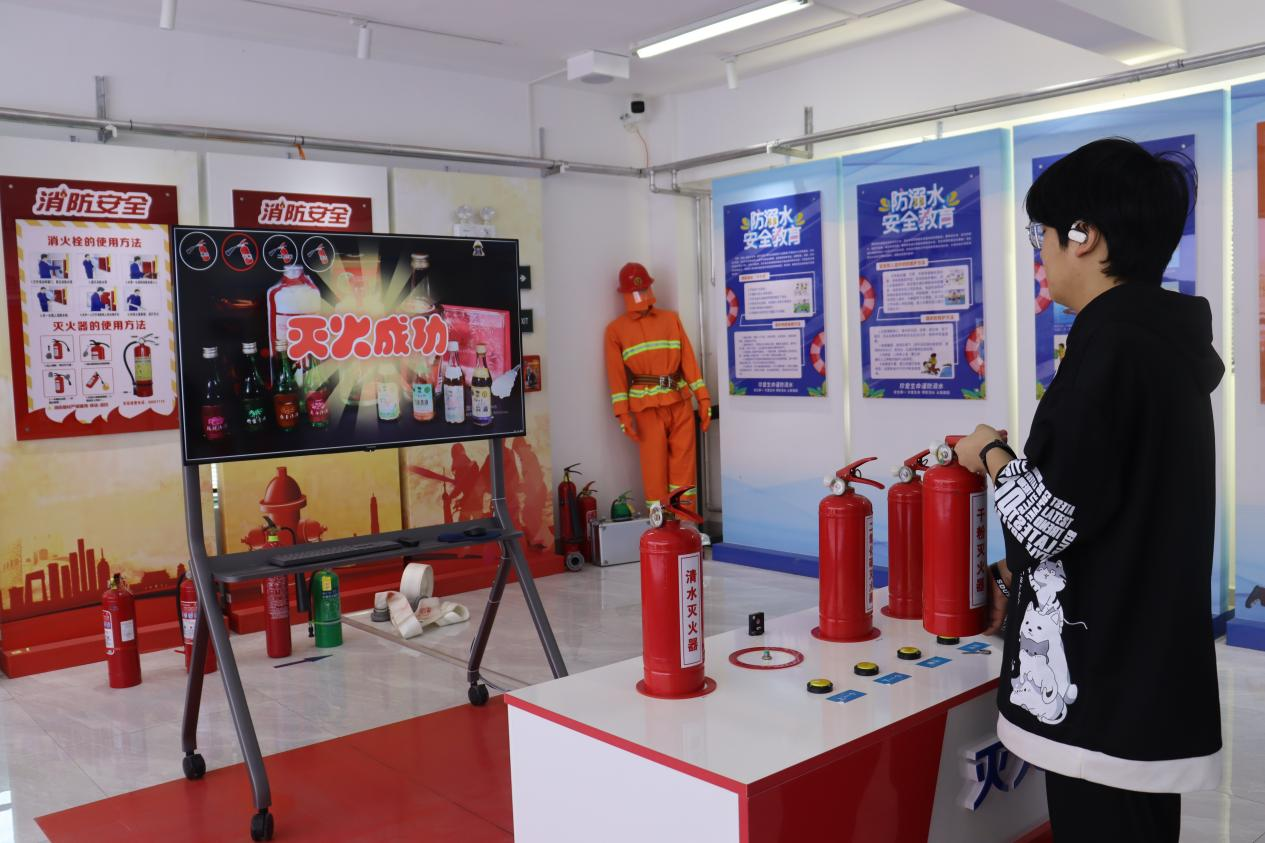 在讲解员细致解说下,总体国家安全观系统、全面地呈现在同学们面前,让同学们对安全有了更加宏观的认识和思考;同学们通过动手实操对日常生活中常见的安全防护用具进行了详细的了解学习。在特别设置的体验区,火灾灭火演示器模拟火场环境,引导掌握灭火技巧;智能马路模拟系统,通过交通演示仪解析道路风险;急救技能工作坊,用心肺复苏模型开展应急救护培训,提升学生应急实操能力。“这些身临其境的操作演练,比书本知识更令人印象深刻。”同学们在体验后纷纷感慨道。