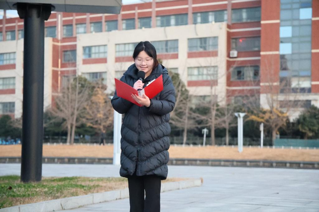 在国旗下,学院全体师生共同学习了党的二十届四中全会精神。学生代表颜羽和李咏容共同进行《锋刃映红日,青春誓山河》主题朗诵,真切阐释了一代代青年人的赤诚与担当。回望历史,百年前,一群青年高举信仰火炬寻找民族复兴的希望;百年后,一代代青年人把青春奉献给了祖国,成为实现中华民族伟大复兴的先锋力量。今年恰逢中国人民抗日战争暨世界反法西斯战争胜利八十周年,天安门前盛大的阅兵式向世界展现了中国的大国底气与磅礴力量。最后全体师生庄严宣誓“以青春之我,传承百年信仰;以我之青春,创造盛世辉煌”,展现了当代青年复兴中华的坚定决心。