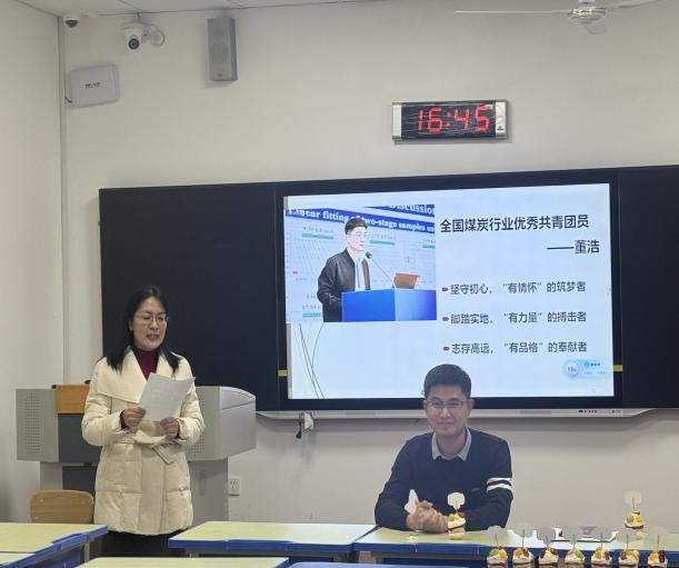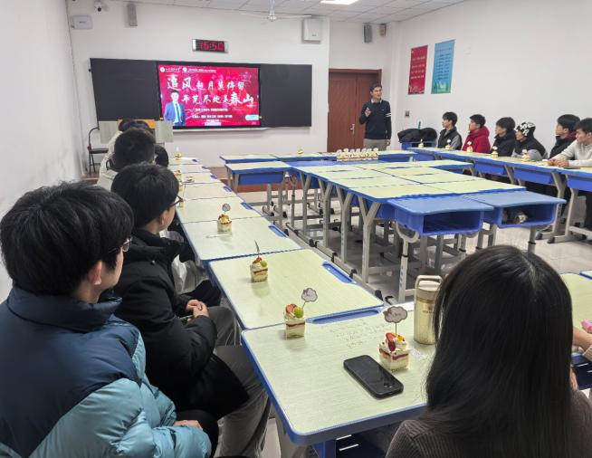 12月14日,安全工程2025-1班于J14-505开展“学业规划与期末复习动员”主题班会,会议由班主任陈海燕主持,并邀请全国煤炭行业优秀共青团员、安全学院博研2023级班长董浩做主题报告全体学生参加