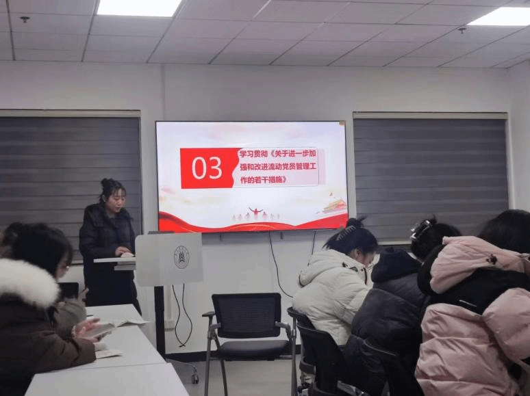 随后,董雨嘉同志对《关于进一步加强和改进流动党员管理工作的若干措施》进行了详细解读。她阐述了加强和改进流动党员管理工作的背景和意义,详细介绍了流动党员日常教育管理的具体工作措施以及加强流动党员党组织建设的具体要求,并强调了落实基层党组织管理责任和流动党员责任的重要性,使大家对流动党员管理工作有了更加清晰的认识和理解。