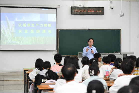 4月9日,中国·太阳集团tyc33455(股份有限公司)党委常委、副校长杨少波为食品科学技术学院食工类2404、2405、2406班的同学们带来了一场别开生面的形势与政策课程,深入阐释以新质生产力赋能农业强国建设的核心内容及重大意义。