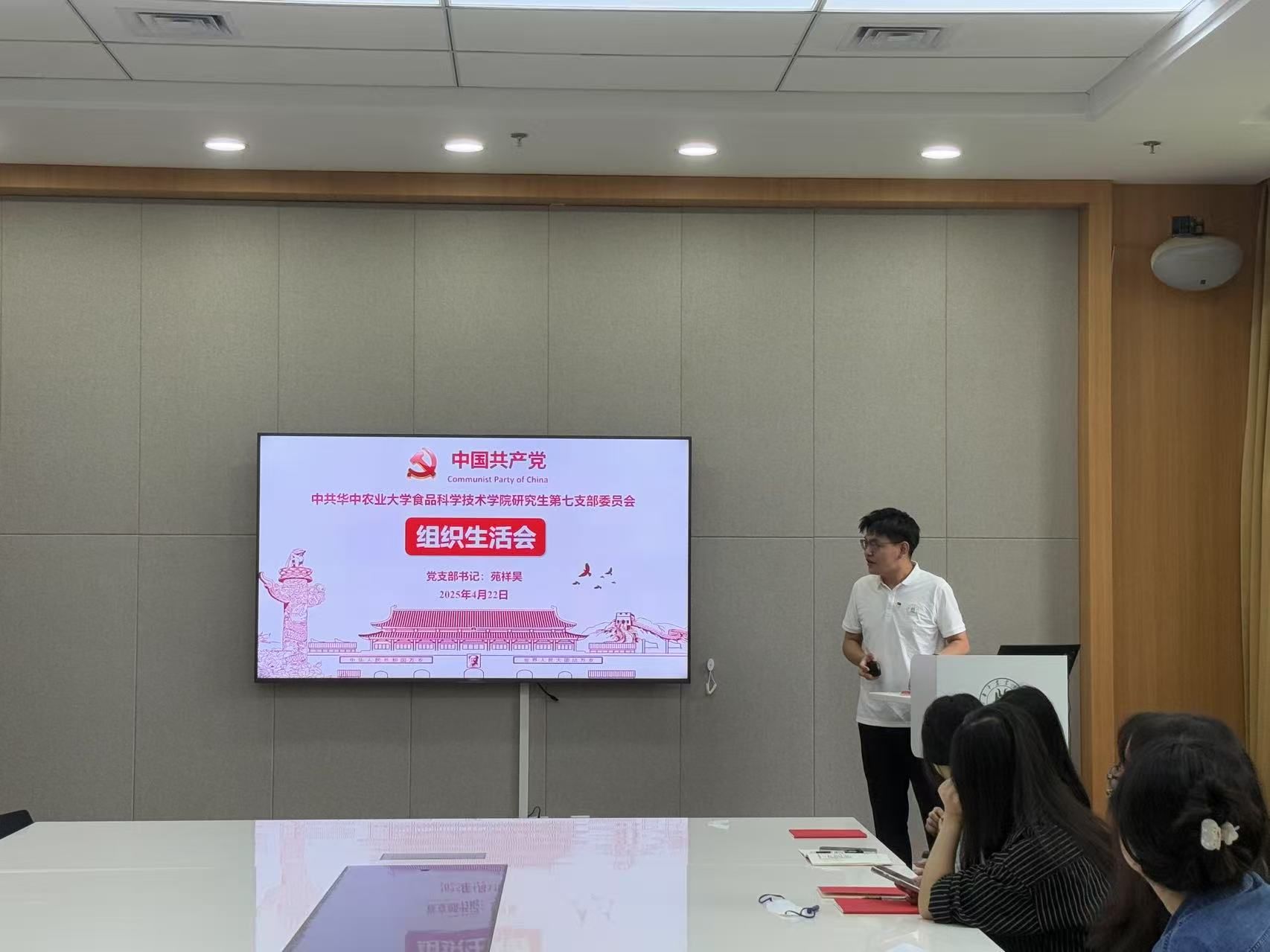 (通讯员 王佳文 龚琬婷)2025年4月22日下午14:30,食品科学技术学院研究生第七党支部在新工科楼122会议室举办了“深学规定筑防线,严抓作风砺初心”主题党日活动,并召开组织生活会,刘石林副院长出席会议。此次主题党日活动由第四党小组袁媛同志领学,组织生活会由党支部书记苑祥昊同志主持,旨在深入贯彻中央八项规定精神,深入学习领会习近平总书记关于总体国家安全观的重要论述,激励党员同志们不忘初心、砥砺前行。