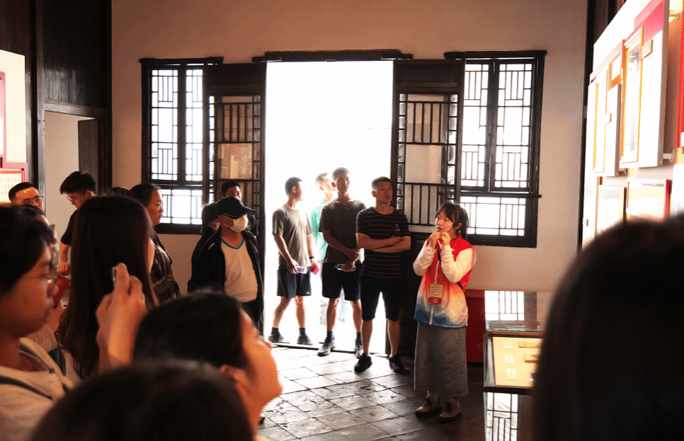 随后,众人来到毛泽东旧居。旧居内,青砖灰瓦、木质楼梯,真实还原了当年的生活场景。在刘新雅同学生动的讲解下,大家共同回顾起过去毛泽东在此居住的经历:1927年上半年,毛泽东在此撰写《湖南农民运动考察报告》,主办中央农民运动讲习所,筹备成立中华全国农民协会,并出席中共五大、“八七”会议等重要会议 。不仅如此,杨开慧及其子女,还有罗哲、夏明翰、蔡和森等共产党人也曾在此居住。同学们认真聆听讲解,仔细参观毛泽东和杨开慧用过的铁箱、座钟、煤油灯等文物,仿佛穿越时空,与革命先辈进行了一场心灵对话,深刻感受到革命先辈们在艰苦环境下依然坚定革命信念、为理想不懈奋斗的伟大精神。
