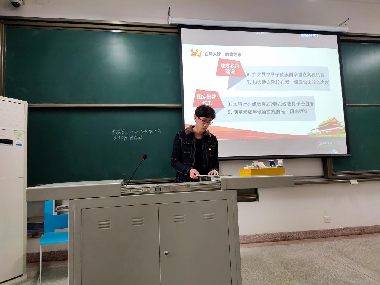 随后,支部党员围绕入党积极分子推优、两会及四史分享进行了交流和学习。各位入党积极分子分别就自己的入党动机、对党的认识以及在学习、学生工作、志愿活动等方面的表现进行了阐述。马高同志就两会热词——“教育”和“就业”展开了微党课。他结合自身经历谈到,教育是不断发展变化的,“作为大学生,我们对教育可能还没有特别深刻的见解,但我们要努力学习新知识,不断开阔眼界。‘术业有专攻’,但不能让专业知识局限自己。”他说。接着,在四史学习交流讨论中,刘珂同志就自己寒假观看的影视篇《我和我的祖国》谈了谈自己的感想,她说道:“任何事情的成功背后都有数不清的人付出了自己的努力”。其他同志也就自己寒假所学习的内容进行了交流讨论。