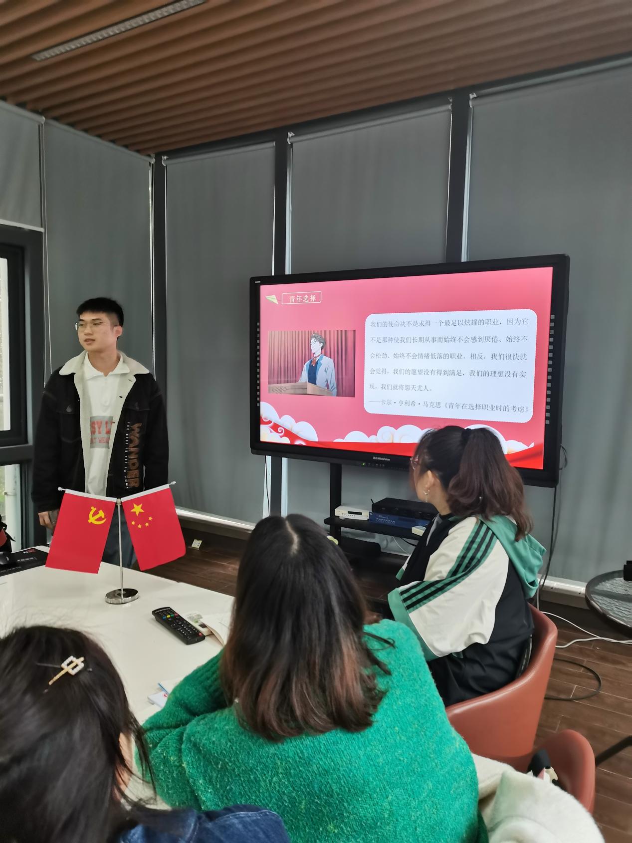 随后,李天韵同志就学习“四史”展开分享与交流,她从党史、新中国史、改革开放史和社会主义发展史四个方面进行讲解。此次主题党日为增进支部同志间的交流与了解、调动大家学习理论知识的积极性,增加了主题问答环节。主持人王梦娜同志读完题后,其他同志开始抢答,并对表现积极且具有丰富理论知识的同志发放小礼品表示鼓励。接着,第二小组的李文宝同志带领支部成员学习两会的相关知识,于慧萍和章志淳两位同志结合自身经历与此次会议主题进行分享。