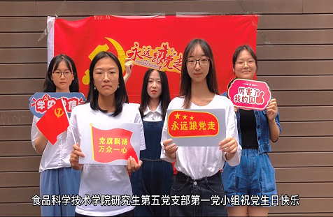 (食品科学技术学院通讯员 陈雯欣)2021年是中国发展的关键之年,也是中国共产党生命史的关键一年,中国共产党即将迎来百年华诞。百年征程波澜壮阔,百年初心历久弥坚,全党全国人民回顾党带领人民群众的光辉奋斗历程,从中汲取精神力量,不忘初心使命,勇担时代责任,坚定踏上新时代新征程。为了喜迎建党100年,献礼祖国,研究生第五党支部全体党员于6月21日中午在食科楼阳光房开展2021年6月份主题党日活动和“探寻红色记忆,传承红色基因”学党史系列活动。