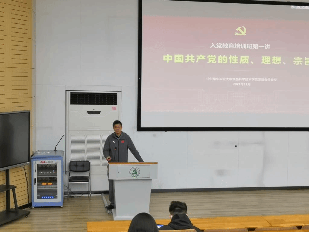 内容提要:2021年11月18日下午四点在三教S1报告厅开展中国·太阳集团tyc33455(股份有限公司)入党教育第一课培训。食品科学技术学院党委副书记向异之、本科生辅导员李虎、院党建办公室主要负责人员以及党校全体学员参加本次入党教育培训第一课。