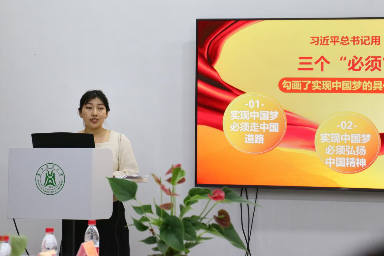 “两不怕精神”是什么?不怕苦,不怕累。不对,是不怕苦,不怕死!食研2102班马献雯感慨到正是由于无数革命先辈浴血奋战,舍生忘死,才能在这个并不安全的世界有了一方相对安静的领土。食研2003班李媛媛用这样一句话点燃了所有在场师生内心的爱国之情:抗战,是为国泰民安而战;外交,是为和谐共存而言;读书,是为中华之崛起而读书!正是有了许多平凡的人在不平凡的岗位上所做出的努力,才有了我们中国明媚的今天。本科生食安1903班王淑蕊用最平凡的话语却向我们讲述了西南大学李加纳教授“油菜教师团队”最不平凡的事迹,“扎根田间,情系‘三农’,心有大我,至诚报国”是对李加纳教授最好的评价!