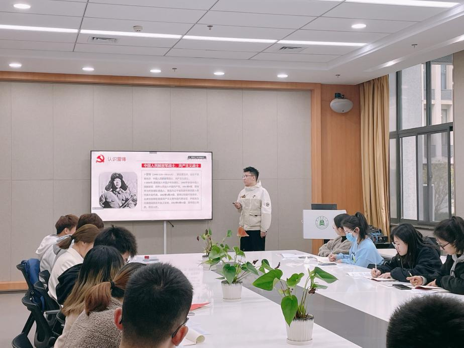 会议第一项,支部党员、学院党建办主任梁一豪领学雷锋精神,他从雷锋同志的生平引入,以“习近平讲述的故事”视频展现了雷锋同志平凡而伟大的共产主义精神、奋不顾身的无产阶级斗志,“人民的困难,就是我的困难,当人们有困难的时候,我决不能袖手旁观!”雷锋同志的话语掷地有声,年轻党员生逢伟大时代,是党和国家事业发展的生力军,梁一豪同志号召支部党员、学生骨干在新时代践行雷锋精神,助人为乐、无私奉献、爱岗敬业、吃苦耐劳、勤俭节约,以螺丝钉精神增强本领,不辜负党和人民的嘱托。