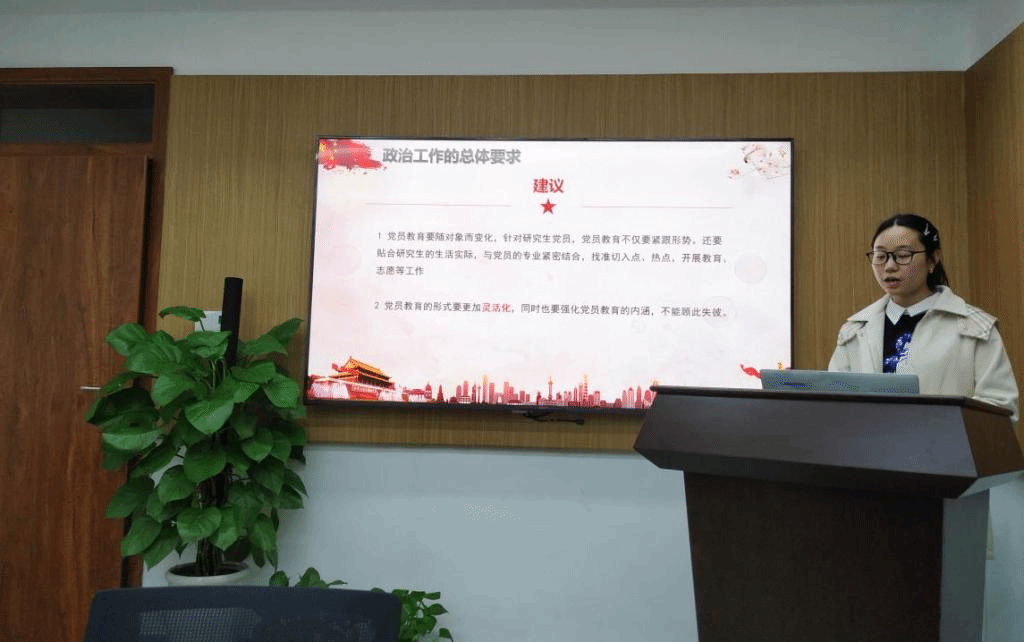 (食品科学技术学院通讯员 莫翠园)食品科学技术学院研究生第五党支部于3月23日晚在工科楼225室开展三月主题党日活动及预备党员转正大会和党员民主评议活动,党支部副书记杨金艳主持本次活动。