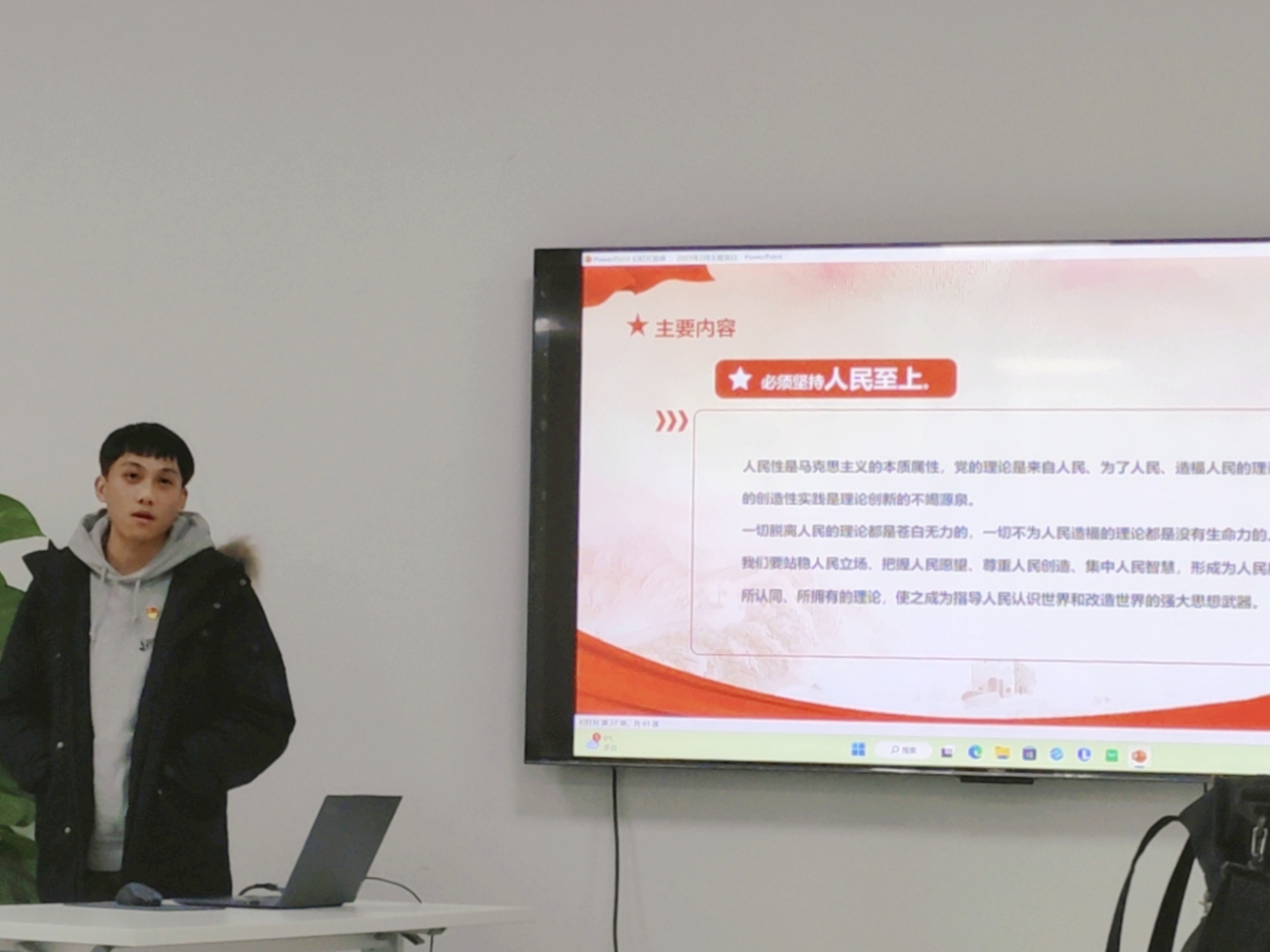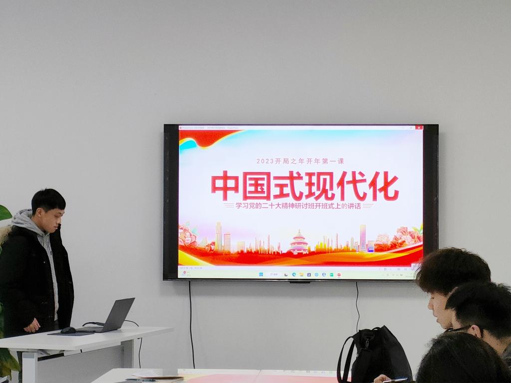 认真学习宣传贯彻党的二十大精神,事关党和国家工作全局,事关中国特色社会主义事业长远发展,事关最广大人民的根本利益。为引导研究生党员把思想和行动统一到党的二十大精神上,2月24日中午,食品科学技术学院研究生第七党支部开展二月主题党日活动,共同学习习近平主席在学习贯彻党的二十大精神研讨班开班式上的重要讲话,并以此为基,更加深入地学习中国式现代化的本质特征以及“坚持人民至上”的理念。会议在工科楼120会议室进行,由研究生第七党支部书记丁一峰主持。