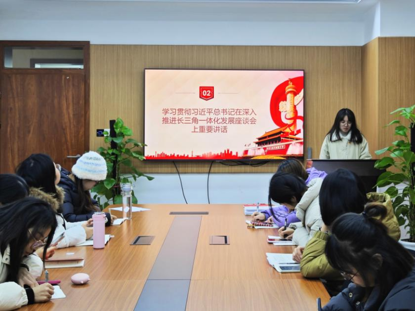 会议伊始,杨涵同志带领大家学习习近平总书记在中共中央政治局第十次集体学习会上重要讲话精神。基于此,党员们了解并认识到,加强涉外法治建设既是以中国式现代化全面推进强国建设、民族复兴伟业的长远所需,也是推进高水平对外开放、应对外部风险挑战的当务之急。随后,王雅蓉同志向大家讲解习总书记在深入推进长三角一体化发展座谈会上的重要讲话,并着重介绍其中提到的“五方面举措”。杨静漪同志则领学了习总书记针对新时代新征程全面贯彻实施宪法所提出的明确要求。