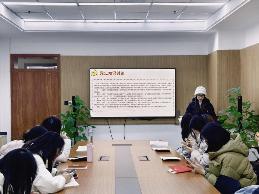在党史问答环节,王蒙同志组织党员们扫码答题并在答题结束后详细讲解分析。之后,李若男同志从“两个结合”切入,提出包括“如何理解‘两个结合’是‘我们取得成功的最大法宝’?”以及“为什么说‘第二个结合’又是一次思想解放”等一系列问题,引导大家进行讨论。朱治同志表示,这次党史的学习活动让他深刻认识只有坚持“两个结合”,坚持运用辩证唯物主义和历史唯物主义,才能够正确回答时代提出的重大问题,进而永葆马克思主义的蓬勃生机和旺盛活力。“作为青年党员,我们要继承和发扬党的光荣传统和优良作风,在不断的学思践悟中成长,坚持不懈地为我们共同的理想和信念而努力奋斗。”他有感而发。王雅蓉同志也分享道:“参与党史问答活动让我意识到学习党史不仅是对于历史事件的记忆,更是一种深刻理解党的精神和理念的方式。这种具有互动性的形式,提高了我的学习兴趣的同时,也让我对党的历史有了更为立体的认知。”