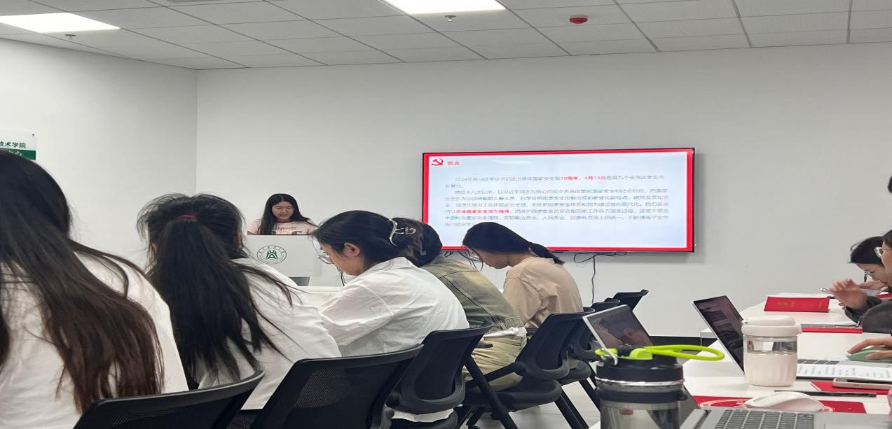 而后,第二党小组主讲人关小燕为支部党员详细介绍了总体国家安全观的深刻要义与核心。关小燕同志认为,国家安全这个话题实际离大家并不遥远。她说道:“虽然身处和平年代,但是我们需要‘安而不忘危,寸而不忘亡,治而不忘乱’。国家安危与民族崛起系于每一个公民,身为青年党员的我们更需要有深刻的认知。”与会党员裴丽娜深深赞同了关小燕的观点,并表示,在这个充满挑战与机遇的时代,需要大家紧绷安全这根弦,铭记国家安全的重要性。“作为新时代公民,我们要自觉履行维护国家安全的责任,为国家的繁荣稳定贡献自己的力量。”裴丽娜说道。