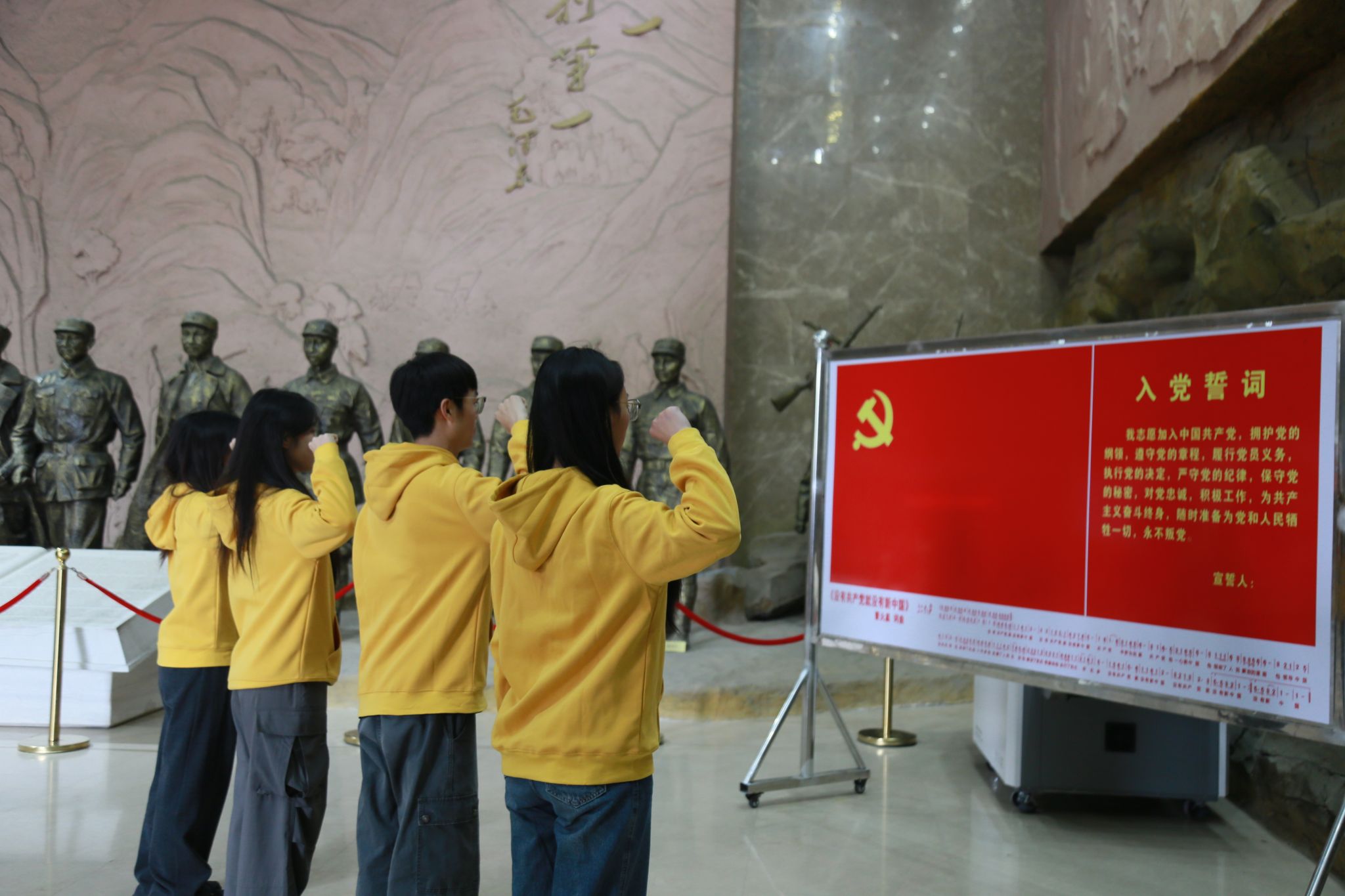 党支部成员在中原突围纪念馆重温入党誓词(龚琬婷 摄)