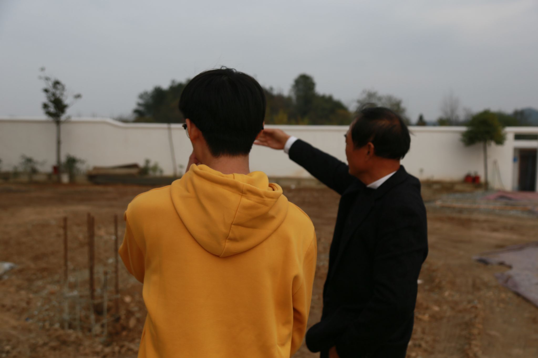 公司负责人正向任冠斌同志介绍公司二期规划(龚琬婷 摄)