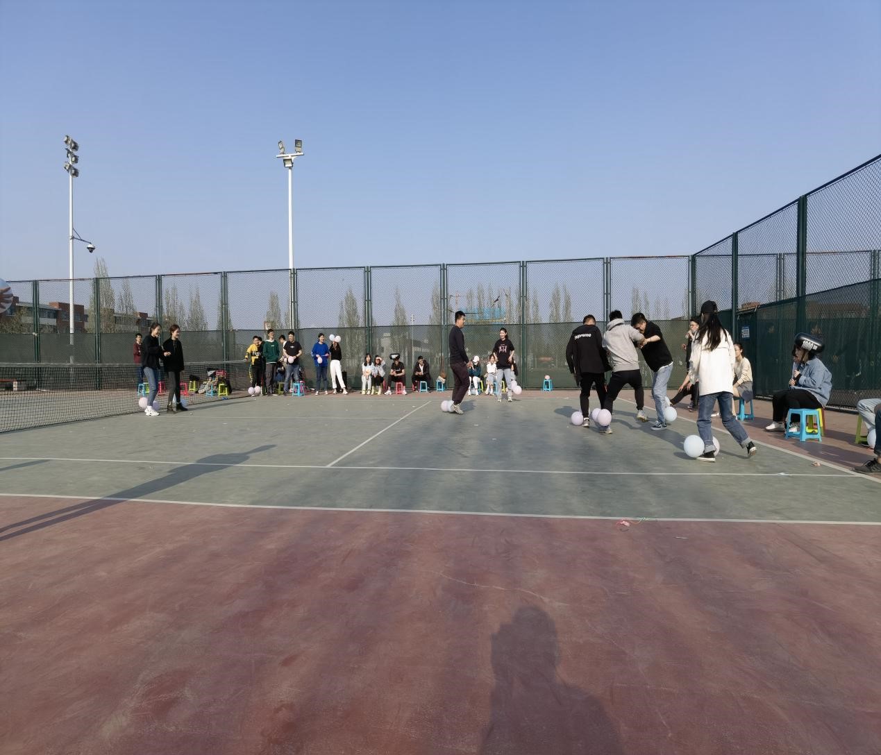 周六下午14:30,团支部在高地操场网球场开展趣味运动会,在一阵暖场音乐后,王泽明、牛琛茜和董浩同学为大家献上了精心准备的舞蹈,之后班长兼主持人董浩宣布趣味运动会开幕并进行了简单的规则说明和活动项目介绍。