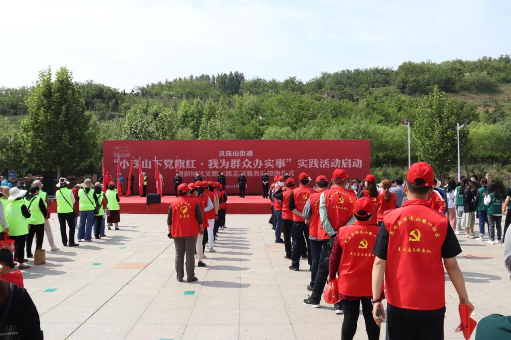 519日,灵珠山街道举办“小珠山下党旗红·我为群众办实事”实践活动启动暨公益小镇志愿团队授旗仪式。山东科技大学安全与环境工程学院绿色使者志愿服务队受邀参加此次活动,安全学院团委书记潘刚、团委老师李玉洁带队前往。