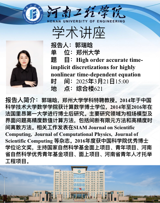 郭瑞晗:High order accurate time- implicit discretizations for highly nonlinear time-dependent equation