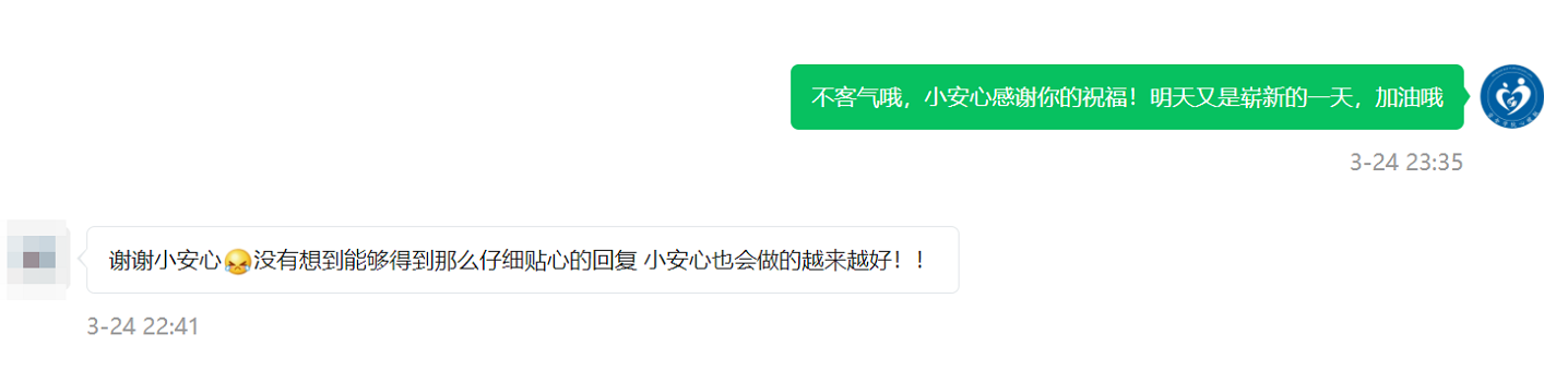 为确保回信质量和专业性,活动采取审核制。志愿者在回信的过程中,治愈了他人,也治愈了自己,收获别样的感动,发自内心的回信让倾诉者豁然开朗,使他们感受到被关注、被理解。促使他们在学习生活中积极向上,面对情感时理性勇敢,遭遇挫折时不轻易言败,对未来充满希望与向往。安全学院心健联也会继续将这份爱与希望传递下去,温暖更多同学的心扉。(何梓萌,杨婷淑)