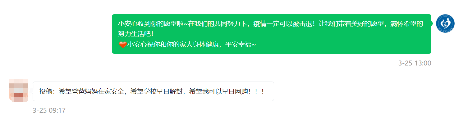 活动在开展4天后,已有千名同学参与其中,引起了热烈反响,学生通过安全学院心健联邮箱、“山东科技大学安全与环境工程学院”微信公众号合理倾诉自己的情绪,同时为抗疫一线的工作人员加油。