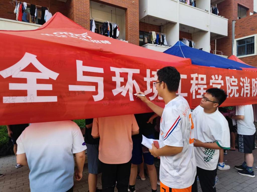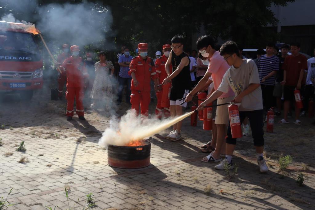 活动中,全体参会学生在工作人员的指引下进行实操灭火。同学们分组进行实操演练,井然有序、轮番上阵,“亲身上阵”将灭火器的使用融会贯通,将理论知识落到实处。实操体验后,现场开展消防知识竞赛,同学们踊跃参加答题,纷纷在横幅上签名,呼吁身边同学学好消防知识,从我们自身做起,减少火灾发生,防患于未然。(郭熙 时林超)