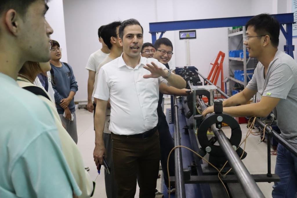 启动仪式结束后,实验室负责老师纳赛尔带领2022级新生进入各实验室参观,并进行实验室安全科普。讲解过程中,纳赛尔结合自身实验室安全经验,针对实验室中存在的人的不安全行为、物的不安全状态、环境的不安全条件等方面进行详细讲述。同时,对实验室紧急喷淋、洗眼器、急救箱、防护眼镜、灭火器、防火毯等常见应急处置设备进行详细解说,警示同学们要重视实验室安全情况,增强实验室安全防患意识,汲取教训,防微杜渐。期间,“新领带”研究生第一党支部党员们积极配合老师开展志愿服务,为同学提供专业名词的解释,并对风险产生的原因以及如何整改进行了讨论。讲解过后,同学们纷纷表示作为一名大学生,在掌握专业理论知识的同时,掌握基本的实验室安全知识、了解实验室操作规程、学会及时解决和处理突发事件也尤为重要。