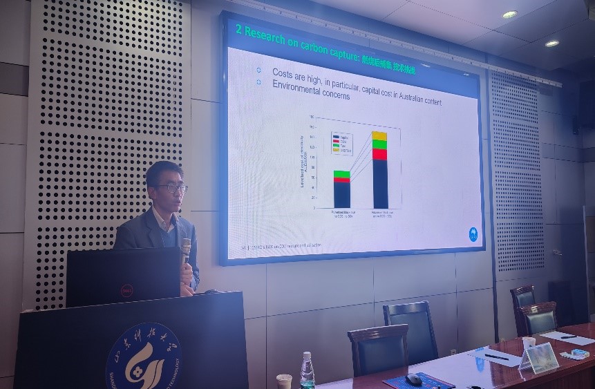 于海研究员全面介绍了CSIRO及其团队当前对于二氧化碳捕获、多种污染物去除、碳捕获和矿化一体化、温室气体转化为增值化学品/燃料、过程模拟和优化等相关内容和最新的研究进展,重点强调了碳捕集与利用的深入研究能够有效处理环境污染和碳排放等相关问题,有助于能源结构进一步优化,对于生态环境的改善具有重大意义。报告后,于海研究员逐一解答了师生提出的有关问题,并以自身经历为切入点,鼓励大家走出国门,以社会发展需求为创新立足点,积极拓宽自身国际视野。