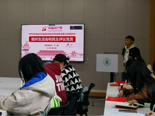 为了适应新形势下党建工作的需要,2024年3月11日,食品科学技术学院研究生第七党支部在工科楼122会议室召开了“立足红色沃土,涵养食研文化”主题组织生活会暨民主评议会。会议由党支部书记丁一峰同志主持,全体党员参加会议。