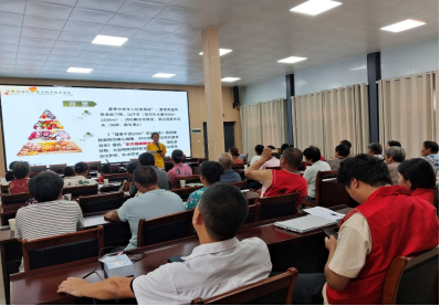 宣讲环节中,团队讲师刘祎恒结合《中国居民膳食指南》和《“健康中国2030”规划纲要》,针对夏季高温环境下中老年人常见的食欲不振、营养流失等问题进行科学分析,并给出合理建议,强调“夏季饮食要注重补水,适量增加富含钾、维生素C的食物,如香蕉、绿叶蔬菜等”。还在讲解中特别提醒居民注意食品安全,避免保健品消费陷阱,增强科学饮食意识。