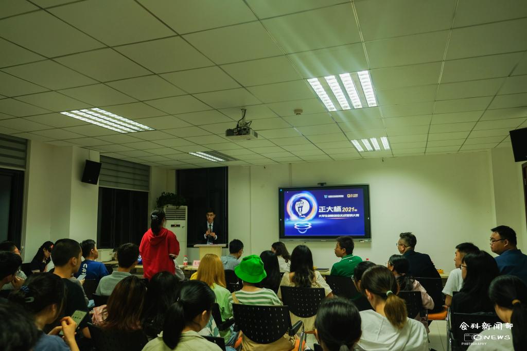 我校创新创业教育中心刘处长则针对此次大赛对于人才培养的意义进行了发言。他认为,通过参与此类竞赛,同学们能检验过往所学及成果,与全国、乃至世界的专业同学同台竞技,从而发现自身的优势与不足。与此同时,他表示,创新创业教育正是解决能力提升问题的方法之一,大家应提升对创新创业的重视程度。另外,他希望同学们要有勇气去“闯”,有能力、有水平去“创造”,利用竞赛的平台来检验、提升自我。