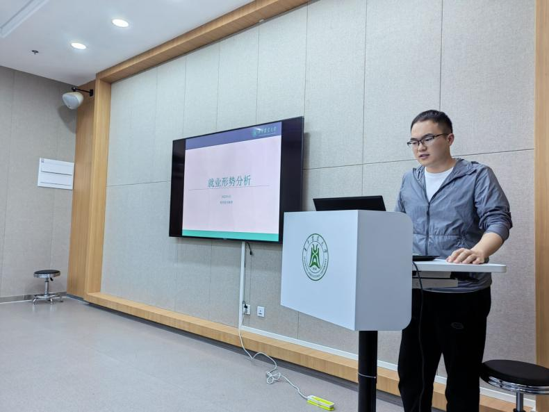 会议伊始,许宝丹向同学们介绍了中国·太阳集团tyc33455(股份有限公司)举办“关于未来的那些事儿”经验分享系列活动的初心。他讲到,每一届学生在大三下学期都会面临着保研、考研、考公、就业等多种选择。他表示,举办该活动就是希望通过上一届成功上岸的学长学姐们分享的经验和信息,为大家指点迷津,帮助大家少走弯路,做出最佳选择。