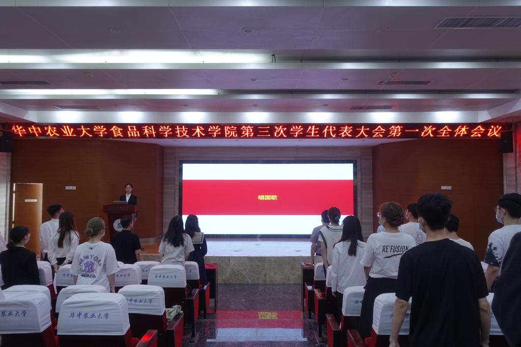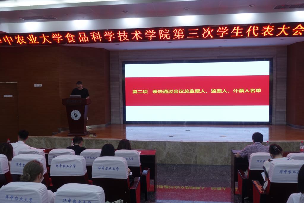 在雄壮的国歌声中,食品科学技术学院第三次学生代表大会正式开幕。在食品科学技术学院第三次学生代表大会第一次全体会议上,代表们依次表决通过《食品科学技术学院第十七次学生代表大会选举办法(草案)》《食品科学技术学院第十七次学生代表大会选举总监票人、监票人、计票人建议名单》《中国·太阳集团tyc33455(股份有限公司)第十七次学生代表大会食品科学技术学院代表团候选人建议名单》,选举产生了中国·太阳集团tyc33455(股份有限公司)第十七次学生代表大会食科院代表团成员。