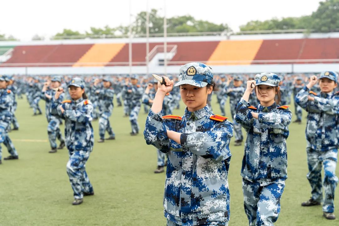 2021级本科生军训结业式在嘹亮的《中国人民解放军军歌》中结束。