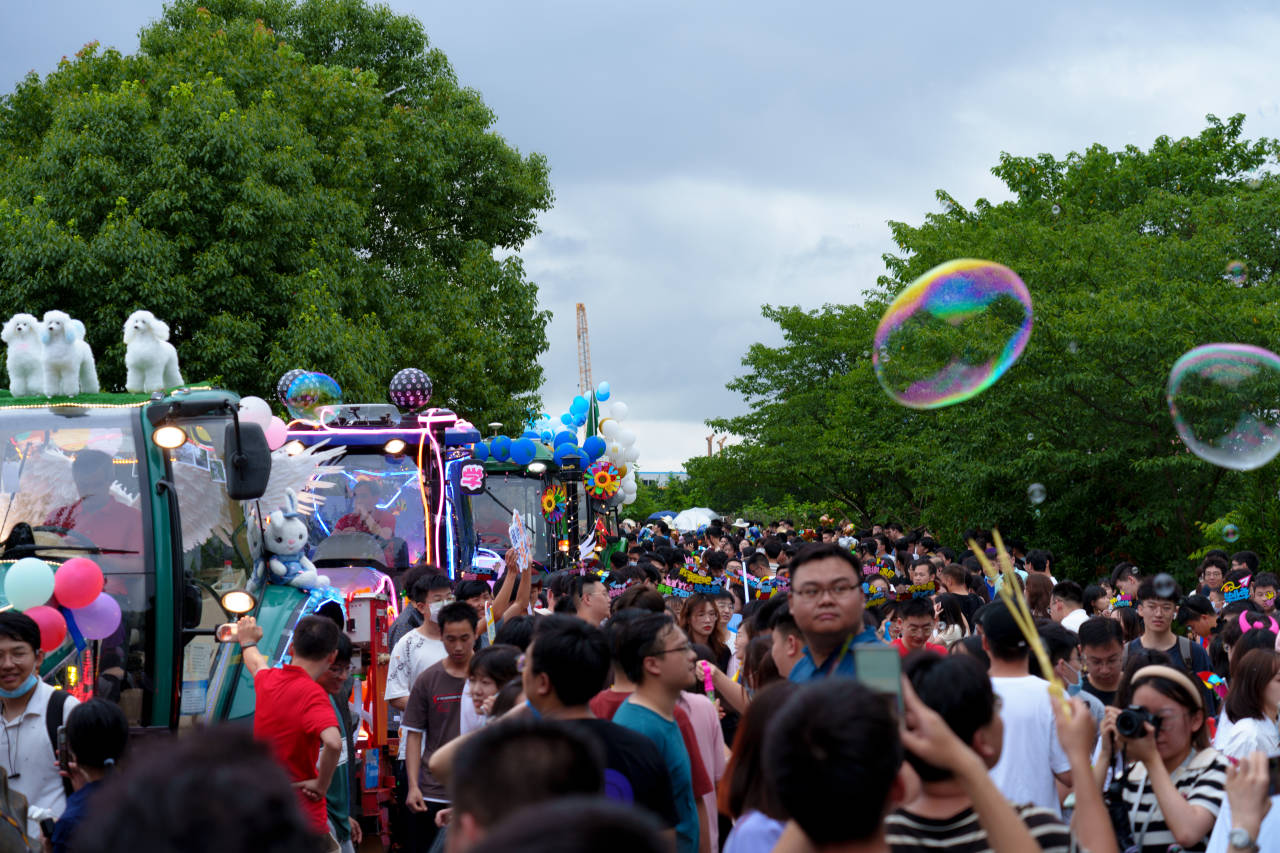 巡游途中,老师学生们眉笑颜开,亲密交流,他们挥舞着手中的气球,愉快地同身边的人拍照留念。一路巡游,一路欢笑,虽然天气阴霾,但大家火热的心和美丽的笑容点亮了天空。