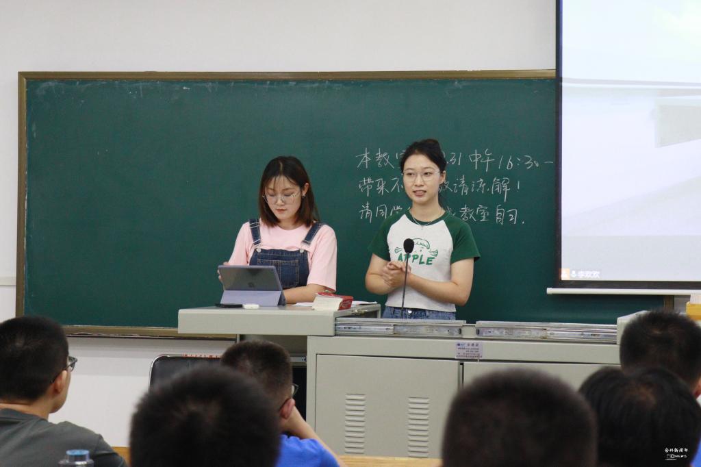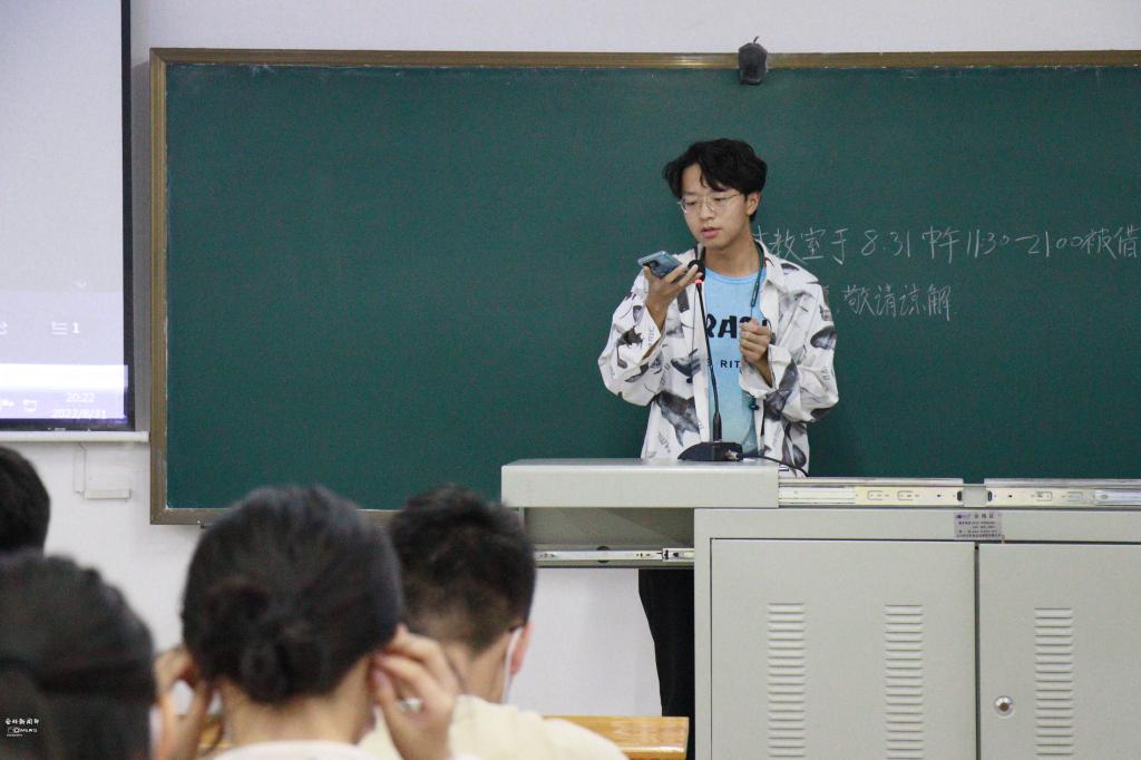“挹江流浩浩荡荡,挟沃野郁郁苍苍……”在食工类2202班与食工类2203班,院文艺部成员李晨阳、熊晨曦分别进行了校歌教学,动听的歌声与细致的教学成功地拉进了同学们的关系,活跃了班级气氛,更是让同学们对我校的历史与文化有了更深层次的了解。此外,食工类2202班下班马铭新引用李大钊先生“不驰于空想,不骛于虚声”的格言,希望新生们仰望星空,脚踏实地,切忌陷入空想,失去自我。