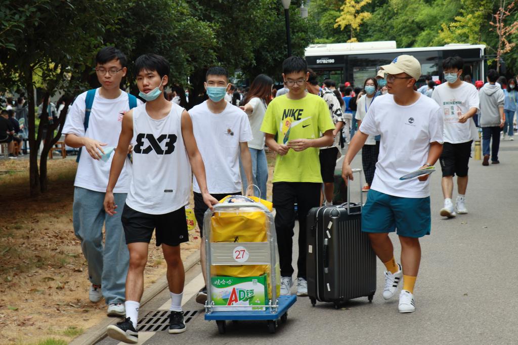 为确保新生可以顺利有序地来校报到,30日上午7点,迎新志愿者们就已做好了一切准备工作,在学院迎新点位等待着新生们的到来。“同学你好,请问你是食科院的新生吗?请跟我来。”搬运行李、道路指引、材料发放、答疑解惑,每一位志愿者都在用尽心、贴心的服务,让新生们在稍显陌生的环境中感到暖心与安心。“一边是骨裂筋伤,一边是学班下班和志愿者们有爱细致的关照,真的被深深感动到了!”食工类2202班刘润润动情地说道。志愿者们一点一滴的服务化身为一粒粒种子,在新生们的心中悄然生根发芽,涵养着莘莘学子的爱校荣校情怀。
