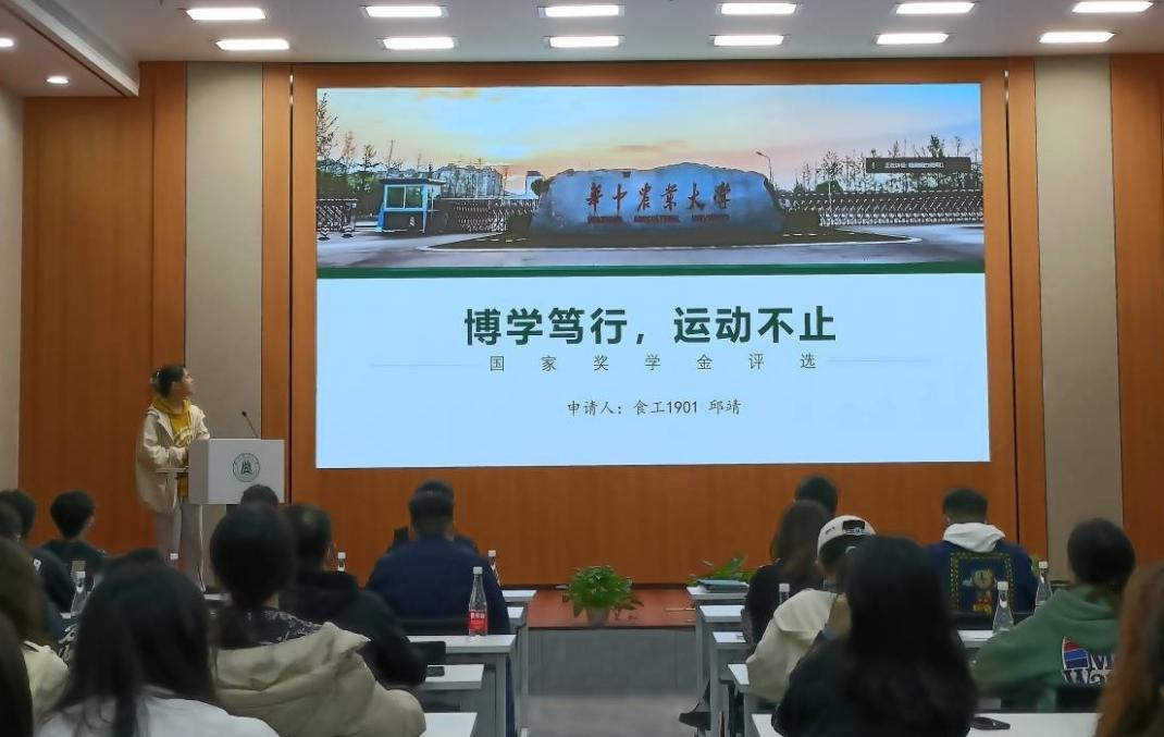首先进行的是国家奖学金评审会。国奖申请人按照顺序依次进行展示,从专业素养、学生工作、社会实践与综合发展几个方面进行总结与回顾。食安1902班李晓讲述了“一名普通学子在大三逆袭的故事”,从成绩平平无奇到今天站上国奖候选的讲台,不禁让人感慨,“星光不问赶路人,时光不负有心人。” ; 食工1901班邱靖“博学笃行,运动不止。”;食工2003班黄群演讲时铿锵有力,抑扬顿挫,尽显我食科学子自信风采;食工类2101班石梦涵对国奖有着清晰的认识,她说“国奖的设立不仅是一种荣誉,也是一份殷切希望和鼓励,我们要更加努力,用自己的实际行动去回报社会”。