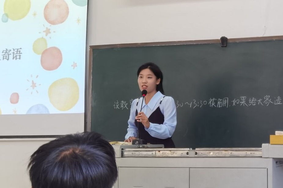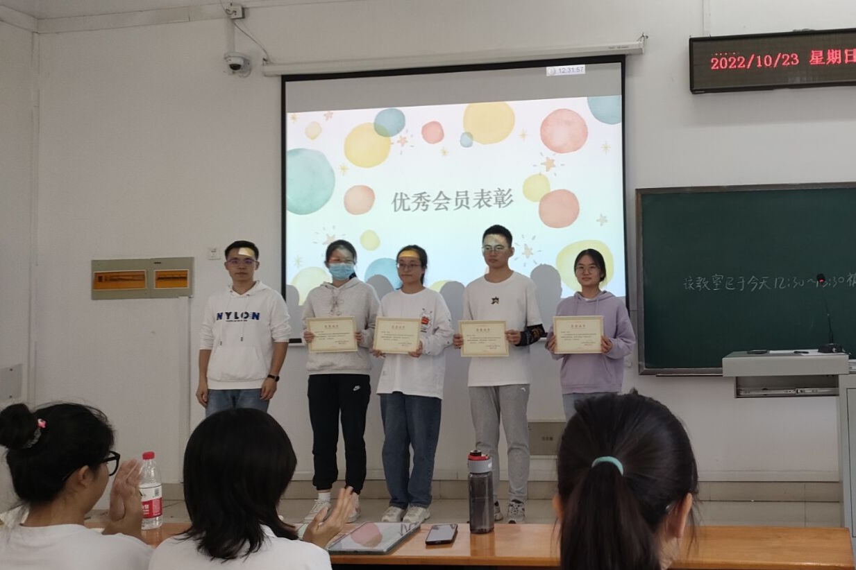 紧接着,由辅导员李虎为上一届优秀会员颁发奖状。食工类2102班李成宇作为优秀会员代表上台发言,向大家分享她的学习感悟。李成宇认为,“灵活运用唯物辩证法”与“团结协作”是理论学习的两个重要方向。她表示,大家应当是“研究者”“讲述者”,要将严肃严谨的思想精神与活泼生动的学习形式紧密结合,做“课堂的主人公”。