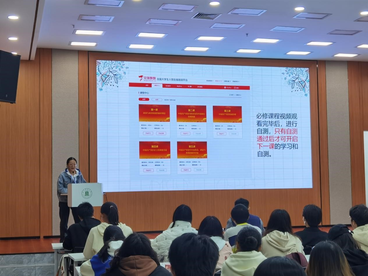 会议伊始,刘秋雨为大家详细介绍了本期党校的学习任务,时间安排,考核方式以及学习平台的注册方法和相关注意事项,并且简要介绍了在党校学习中可能会遇到的问题。
