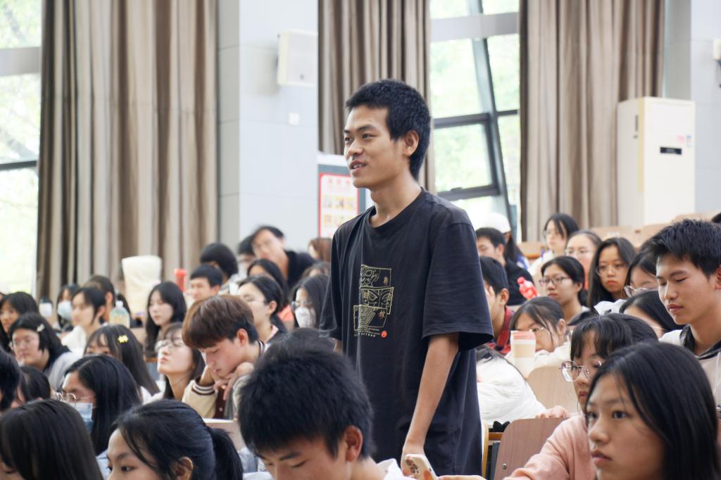 “从只身一人到日益壮大,志愿服务的精神不但在贵州大山生根发芽,更在荆楚大地遍地开花。”谈及新时代华农青年的时代责任,李善达老师以“本禹志愿服务队”为例,讲述了本禹志愿服务队20年来的坚持支教的动人故事,“用一年不长的时间,做一件终生难忘的事”感染了在场的每一位同学。