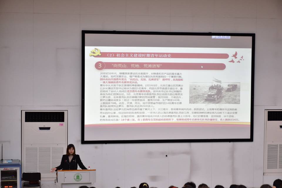 团课伊始,张露老师首先从中国共青团的历史、基本任务、组织原则三个方面出发,对共青团的基础理论做出了简要介绍。她表示,共青团的任务是以共产主义教育青年,而身为共青团员,我们在当下应该做的便是努力学习专业知识,积极参与社会实践,为成为一个有理想、有道德、有文化、守纪律的共产主义事业接班人而奋斗。