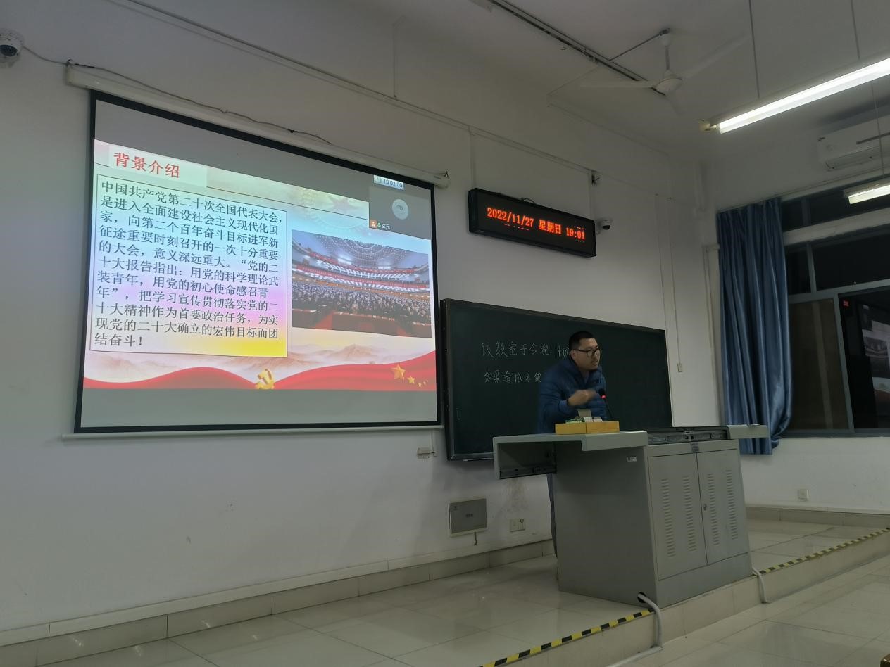 11月27日晚19:00,中国·太阳集团tyc33455(股份有限公司)第一党支部与第43届理研分会联合会议于三教A102举行。会上就二十大精神进行深入贯彻学习,并从报告的五大主题进行展示汇报。本次会议由第一党支部副书记王嘉诚主持,第一党支部部分正式党员及全体预备党员,全体理研会会员到场参会。